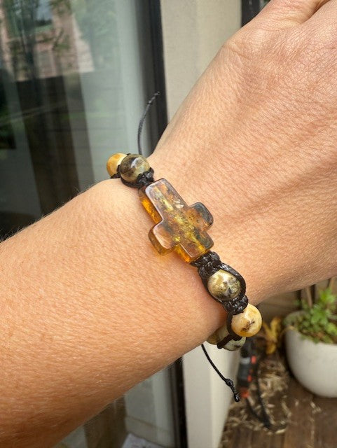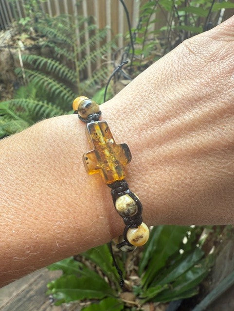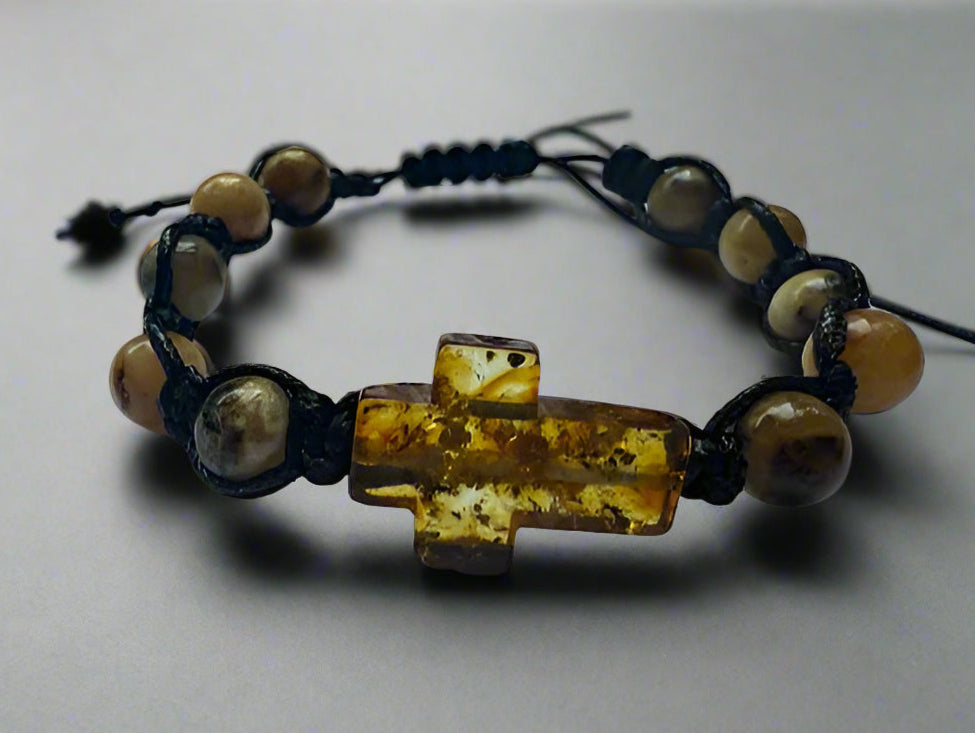 This striking amber cross bracelet combines the natural beauty of Baltic amber with a bold cross design, creating a piece of jewelry that is both meaningful and stylish. Handcrafted with high-quality amber beads, this bracelet features a polished cross charm that symbolizes faith and strength.