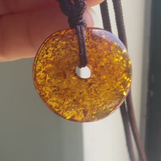 Elevate your jewellery collection with this Baltic Amber Donut Pendant, a timeless piece celebrated for its natural beauty and symbolism. Hand-crafted from genuine Baltic amber, this pendant showcases a smooth donut shape that highlights the stone’s warm golden glow and unique natural inclusions.