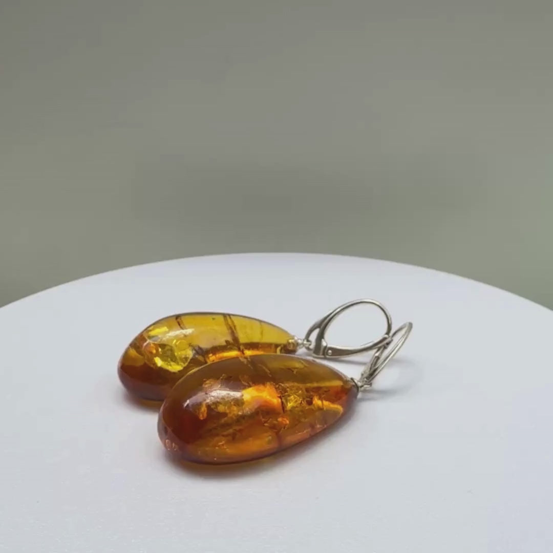 Elevate your look with the timeless charm of our Amber Drop Earrings. These earrings are beautifully crafted to showcase elegant teardrop-shaped amber stones. Each stone has its own unique color and natural pattern, making every pair one of a kind. The teardrop cut enhances the warm glow of genuine amber. Subtle variations in texture and hue add a personal touch to your style.