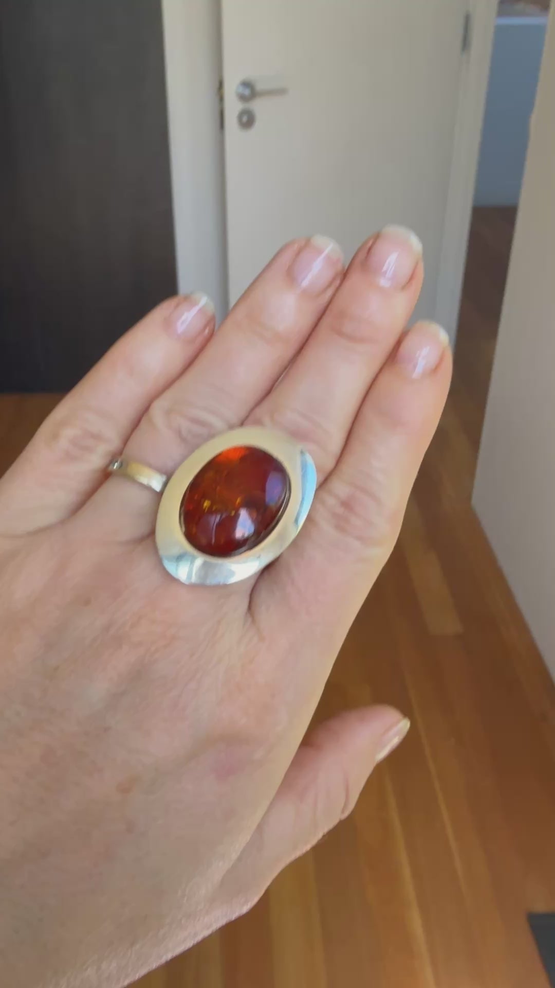 Embrace Timeless Beauty with our Oval Amber, Silver Ring.