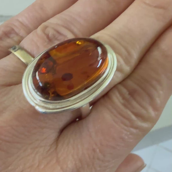 - Features a stunning cognac amber stone 2 cm x3 cm