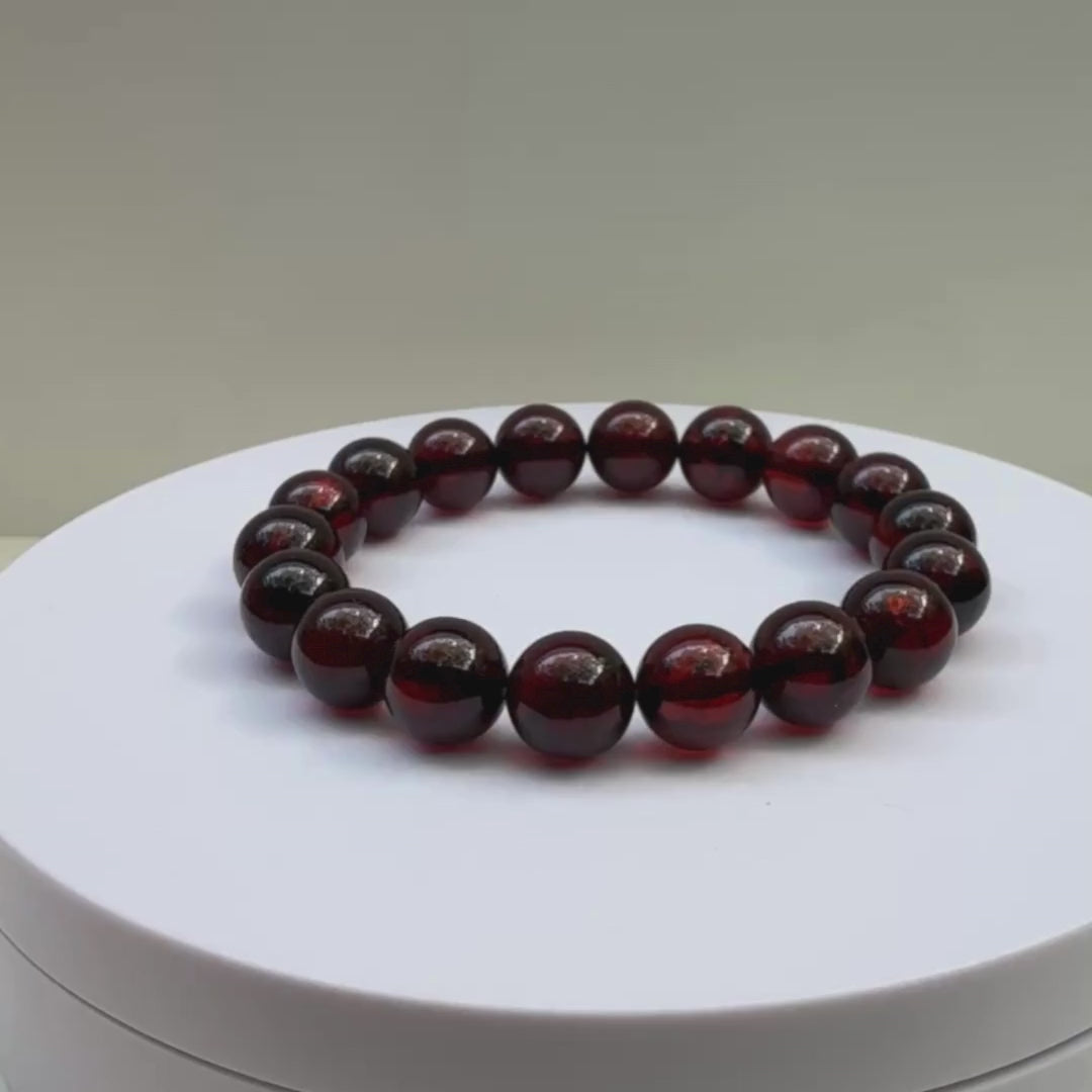 Want to bring a subtle sparkle to your look? Check out this gorgeous amber bracelet with 12 mm beads. A timeless accessory that will never go out of style!