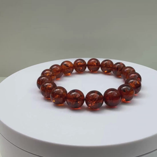 Want to bring a subtle sparkle to your look? Check out this gorgeous amber bracelet with 12 mm beads. A timeless accessory that will never go out of style!