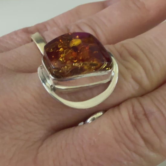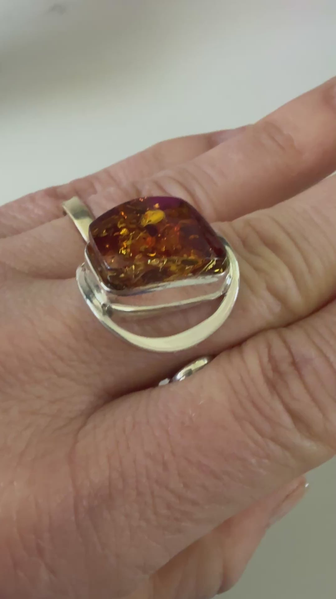 This stunning cognac amber unique ring features a unique cognac amber stone, handcrafted by skilled artisans using traditional techniques. The sterling silver setting complements the warm, rich tones of the amber, creating a timeless piece that will be treasured for years to come.