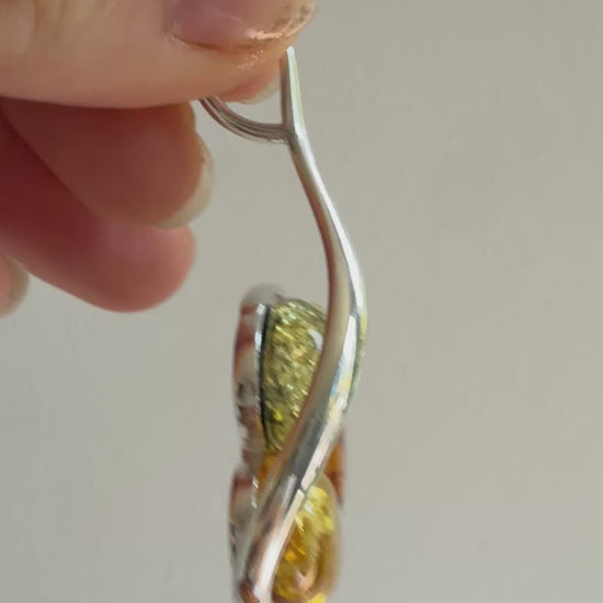 Discover the perfect blend of natural beauty and refined craftsmanship. Our stunning large amber and silver pendant, set in a classic sterling silver finish, is a captivating accessory that will add a touch of elegance to any outfit.