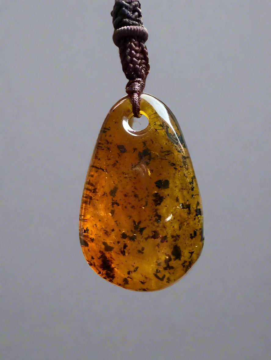 This handcrafted Natural Amber Good Luck Charm Pendant is a beautiful and meaningful accessory, perfect for everyday wear or as a thoughtful gift. Featuring a polished, irregular-shaped piece of deep cognac Baltic amber with intricate natural inclusions and crackle patterns, it radiates warmth and earthy elegance. Suspended on a sturdy, dark braided cord, this pendant symbolizes positivity and protection.