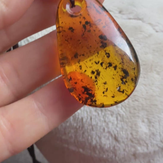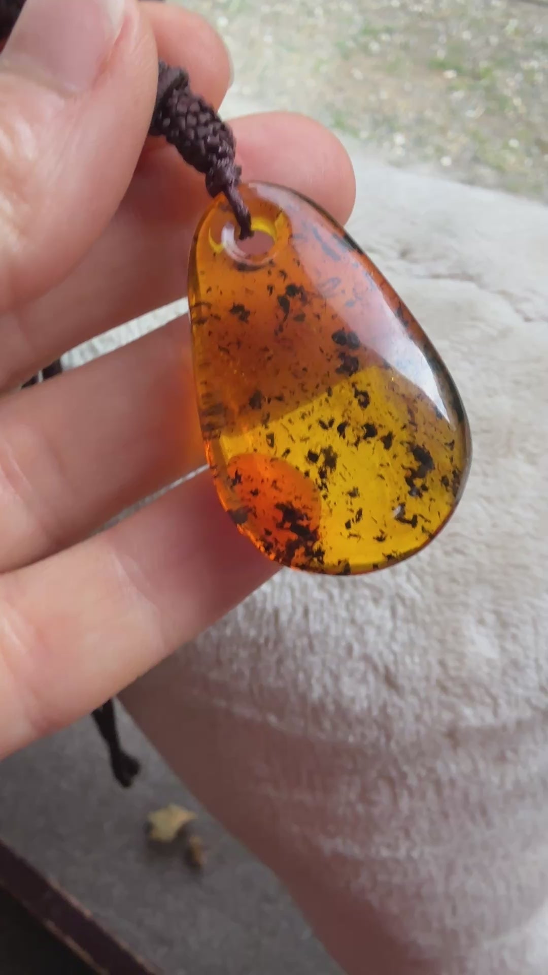 Natural Amber Good Luck Charm Pendant was Hand made in Poland
