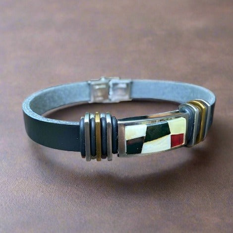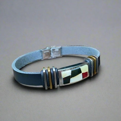 Introducing our premium Amber Leather Men's Bracelet Jan. Crafted for the modern man who appreciates both style and substance, our genuine leather bracelet exudes sophistication and strength. Made from the finest quality leather, each bracelet is meticulously crafted to ensure durability and comfort. Made from high-quality leather, this bracelet is durable and designed to last.