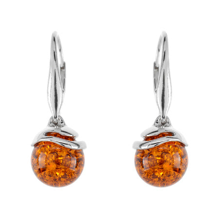 - Gorgeous stud earrings, Sterling Silver with Cognac Amber trimming
