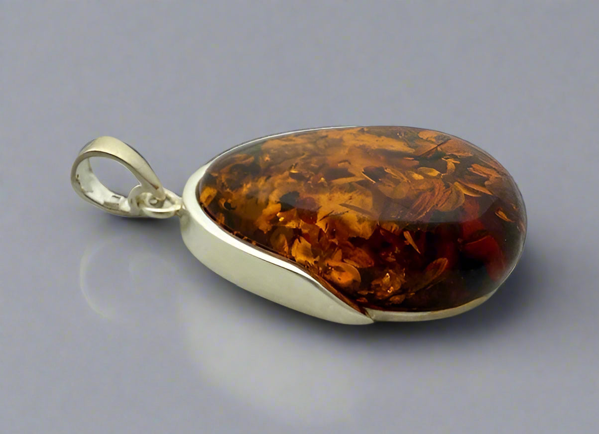 Our Stunning Sterling Silver Amber pendant made with 100% Natural Amber. Baltic amber is estimated to be between 30 and 40 million years old, making it one of the oldest organic materials on Earth.